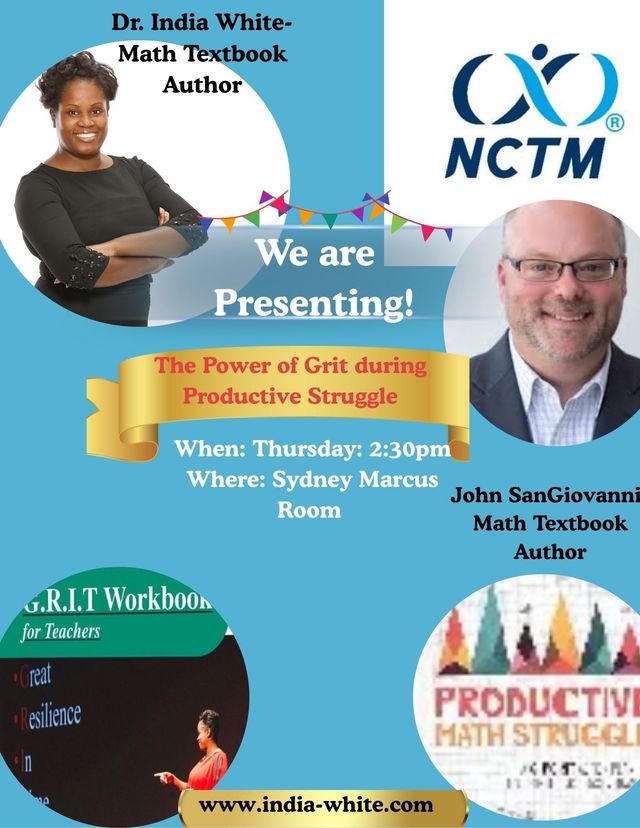 1 am excited to share that I will be a featured speaker at the NCTM 2025 Conference alongside the amazing John SanGiovanni. Together, we’ll explore the power of grit and productive struggle in the mathematics classroom—two essential ingredients for deep and lasting learning. John SanGiovanni will share his expertise on productive struggle, focusing on how teachers can design meaningful math experiences that challenge students to think critically, reason deeply, and persevere through complex problems. His work emphasizes that learning happens not when math is easy, but when students engage in struggle that leads to understanding and growth. In my portion of the session, I’ll discuss building grit through the G.R.I.T. Framework; Growth Mindset, Resilience, Self-Efficacy, and Time Management. Drawing from my G.R.I.T. Workbook for Educators, I’ll share practical tools and strategies educators can use to help students embrace challenges with confidence and persistence. By connecting grit to productive struggle, we can empower students to develop both the mindset and skills they need to overcome obstacles and achieve success in mathematics and beyond. I look forward to connecting with fellow educators at NCTM 2025 as we explore how to inspire perseverance, confidence, and a love for learning through grit and productive struggle.