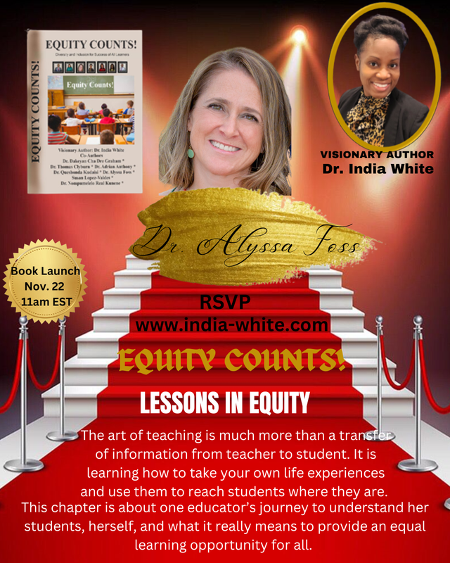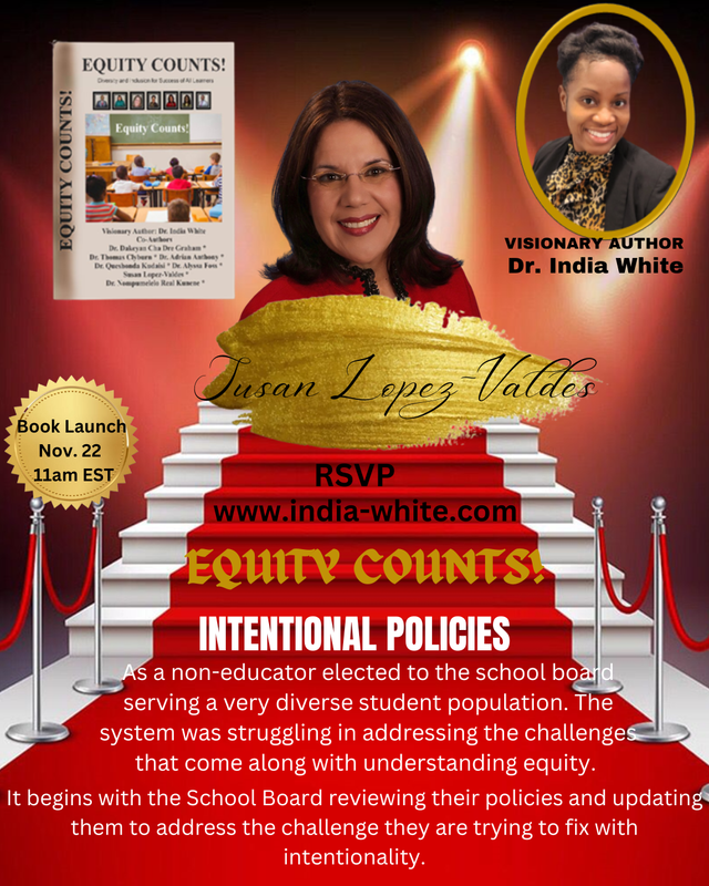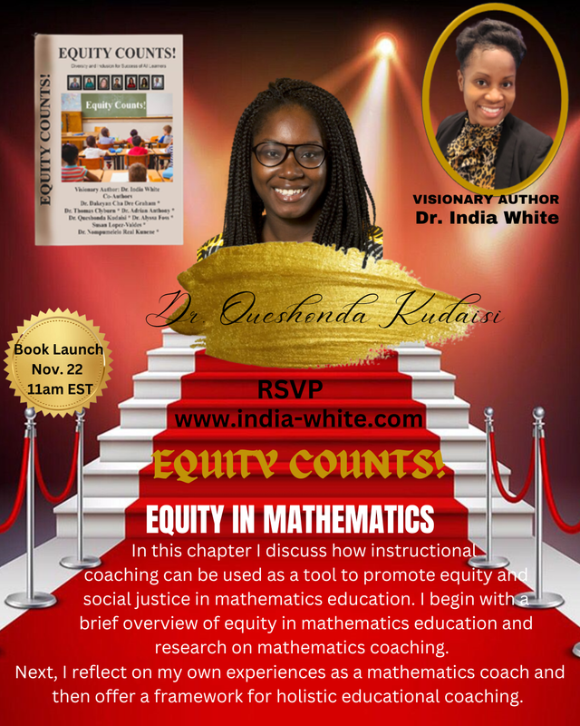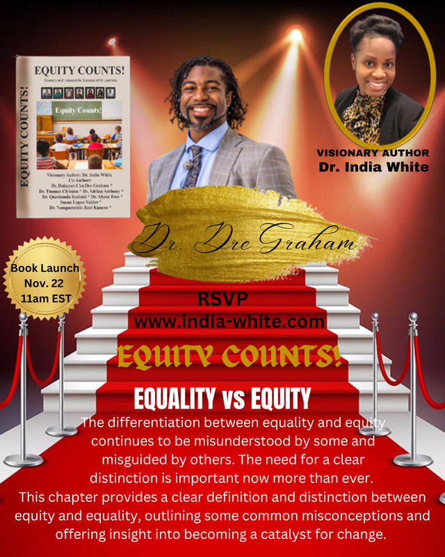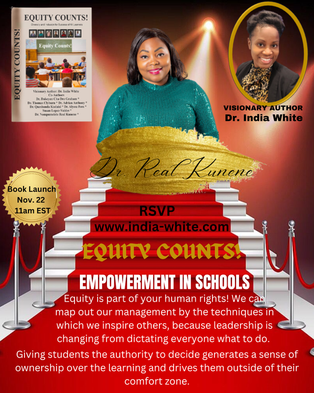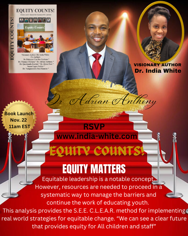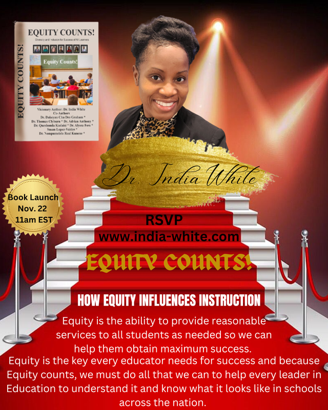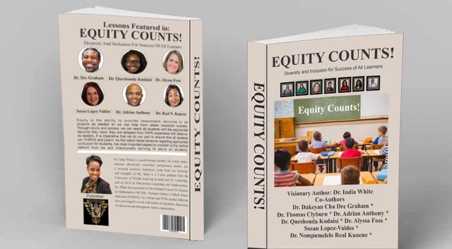 I am excited to announce that I am a New Author in my new Book Collaboration titled, "Equity Counts!" We are grateful for such a wonderful experience and thank Rise To Greater Heights Publishing with Dr. Real for the great work putting it all together!"