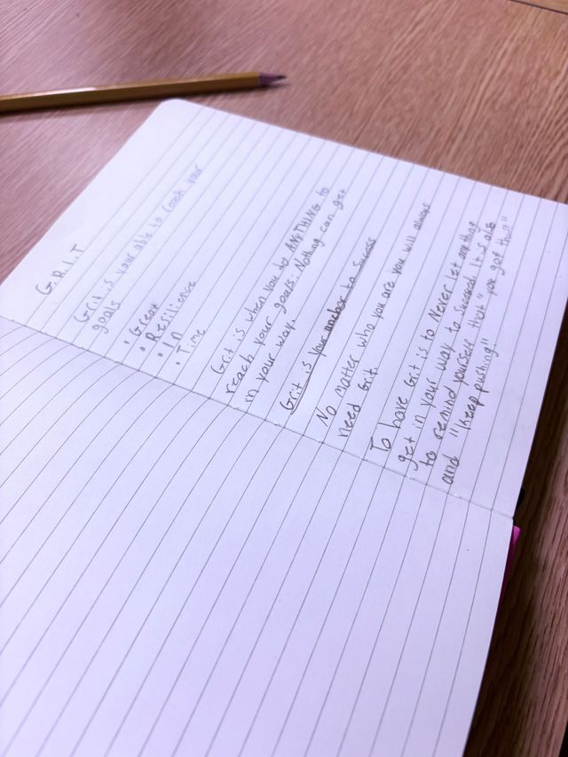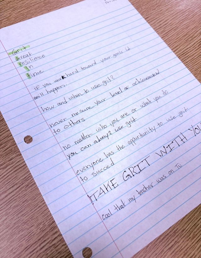 Students reflected on how grit isn’t just about never giving up—it’s about building the internal strength to face adversity, stay focused, and grow over time.