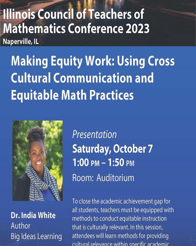 #drindiawhite #tedx #uf #bigideasmath #uf #mathandyou #bigideasmath #nationalgeographiclearning #equity #illinois #ictm2023 #chicago #naperville #teachers #students #math #bwxme #ncsm #nctm #upci #administrators