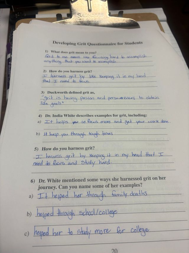 Building Grit in Students through Reflection Activities During a recent training session, I guided students through a structured activity designed to help them reflect on grit and personal accountability. This exercise encouraged them to explore how the G.R.I.T. framework—Growth Mindset, Resilience, Self-Efficacy, and Time Management—applies to their learning and development.^1 Students first participated in guided discussions on grit, focusing on strategies to remain committed, build resilience, and complete assignments on time.^2 Each student then journaled about their personal grit levels, identifying areas of strength and growth. This journaling provided a safe space for honest self-assessment and highlighted the importance of intentional focus.^3 The activity also included collaborative reflection where students discussed their “grit weeks,” emphasizing how to manage distractions, stay accountable, and complete tasks with perseverance.^4 By engaging in both personal reflection and peer discussion, students were able to see grit not as an abstract idea but as a practical tool to help them reach goals.^5 Through journaling and reflection, students deepened their understanding of the four pillars of the G.R.I.T. framework. Many expressed excitement for what lies ahead in their academic journey, recognizing that perseverance and accountability are vital to their long-term success.^6 The activity reinforced the importance of grit in education by providing students with practical tools for self-awareness and improvement. As Angela Duckworth emphasizes, grit involves sustained passion and perseverance over the long term.^7 Likewise, the Power of G.R.I.T. Workbook stresses that equipping students with reflective practices helps foster resilience and determination as they grow academically and personally.^8 Footnotes 1. Angela Duckworth, Grit: The Power of Passion and Perseverance (New York: Scribner, 2016), 8–9. 2. India White, The Power of G.R.I.T. Workbook (Tampa, FL: White Education Consulting, 2023), 12. 3. Duckworth, Grit, 44. 4. White, Power of G.R.I.T. Workbook, 28. 5. Duckworth, Grit, 92. 6. White, Power of G.R.I.T. Workbook, 46. 7. Duckworth, Grit, 275. 8. White, Power of G.R.I.T. Workbook, 59. Bibliography Duckworth, Angela. Grit: The Power of Passion and Perseverance. New York: Scribner, 2016. White, India. The Power of G.R.I.T. Workbook. Tampa, FL: Rising Glory Productions LLC, 2023.