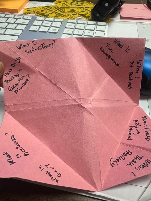 Students love interactive, hands-on activities, and the cootie catcher gives them a chance to laugh, play, and engage in meaningful conversations. Each flap opens to reveal a question, challenge, or reflection tied to the G.R.I.T. framework: Growth Mindset, Resilience, Self-Efficacy, and Time Management.