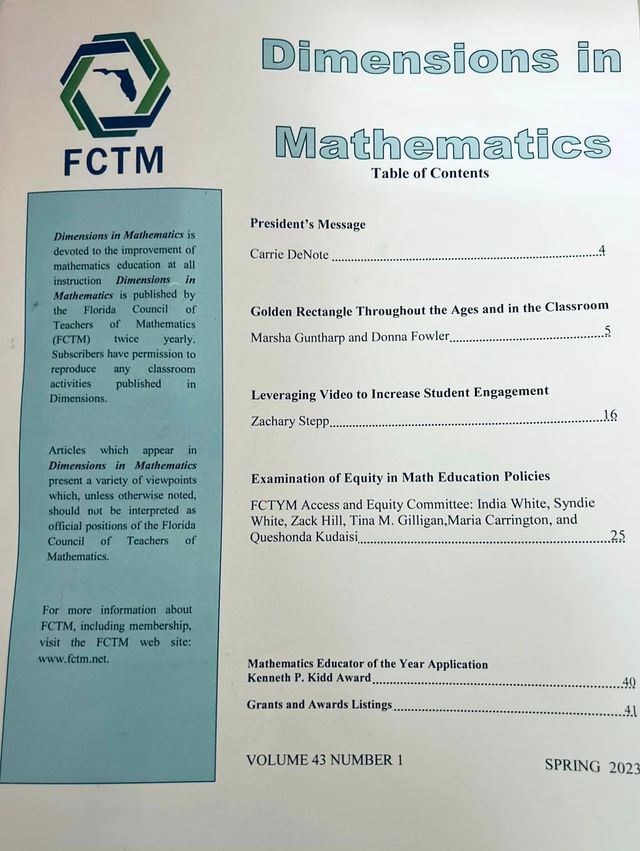 We are OFFICIALLY Published in the FCTM's Dimensions Journal Article!