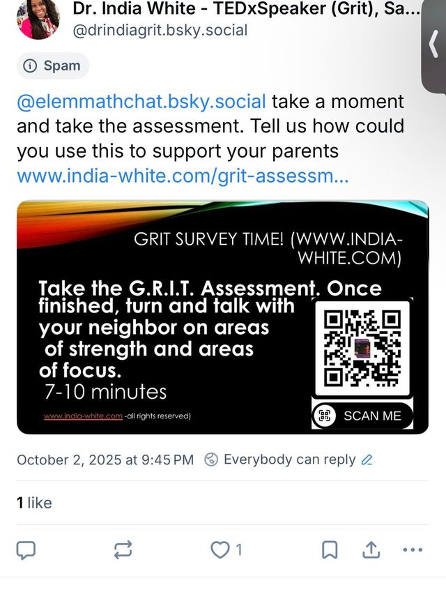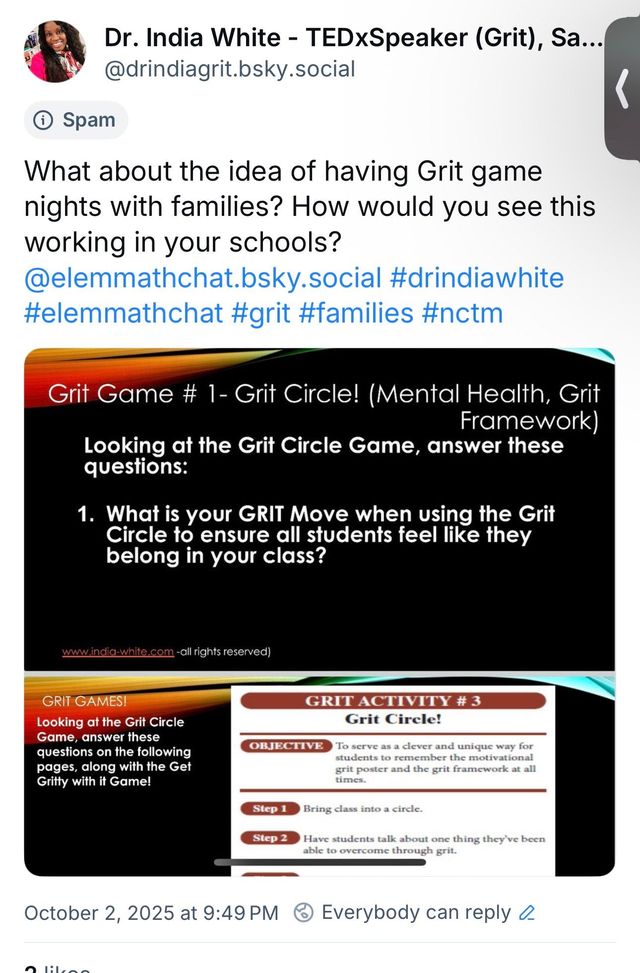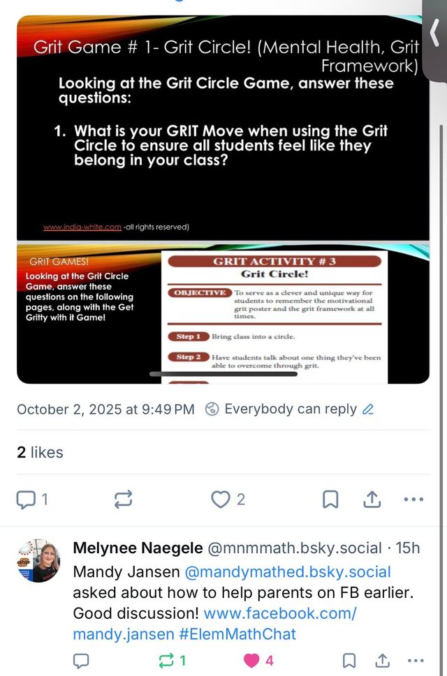 This week I had the privilege of hosting an **Elementary Math Chat on BlueSky**, where educators from across the nation gathered to talk about one of my favorite topics: the **power of grit** in our classrooms and communities. The energy, collaboration, and passion from teachers, leaders, and math coaches reminded me once again of why this work matters.